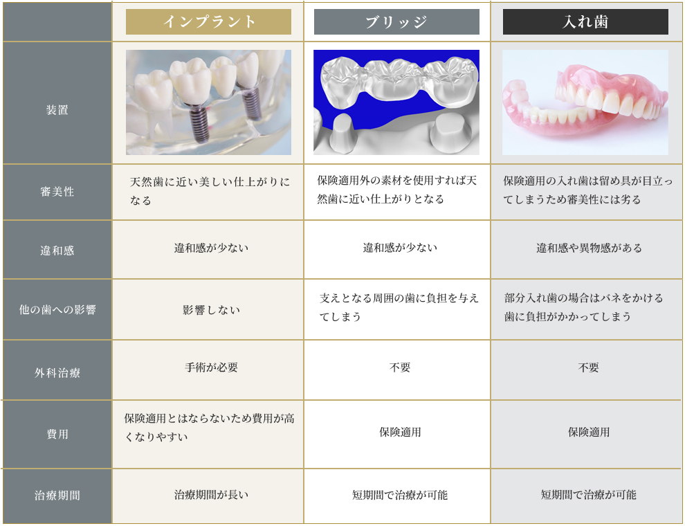 ブリッジ・入れ歯との違い